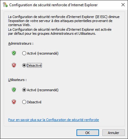 La Configuration de sécurité renforcée d’Internet Explorer est activée